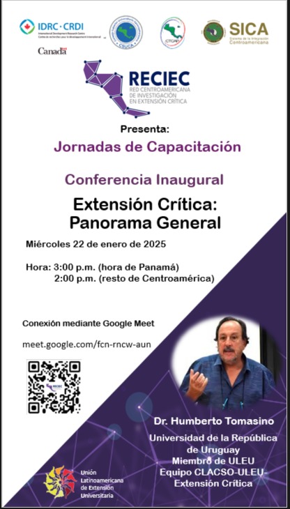 El doctor Humberto Tomassino como líder latinoamericano en Extensión Critica, participará como invitado principal y como referente Latinoamericano sobre el tema de Extensión Crítica. La conferencia tiene como objetivo presentar el panorama general del estado de la extensión en el contexto latinoamericano. Esta actividad es relevante para los debates y análisis de la forma en que este enfoque se adapta al contexto centroamericano.